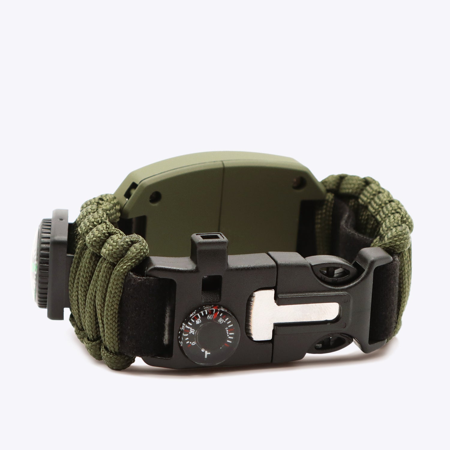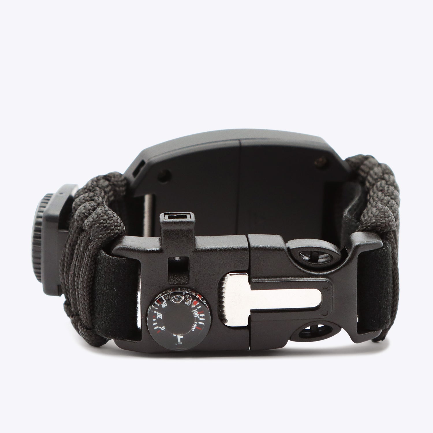 Le bracelet est fabriqué en nylon robuste pour l'extérieur et peut également servir de corde de secours ou de point d'ancrage en cas d'urgence. Cela peut s'avérer crucial, notamment en montagne ou lors de randonnées de plusieurs jours. Grâce à son poids plume de seulement 25 g environ et à sa longueur ajustable, il convient aussi bien aux adultes qu'aux enfants.