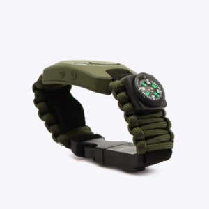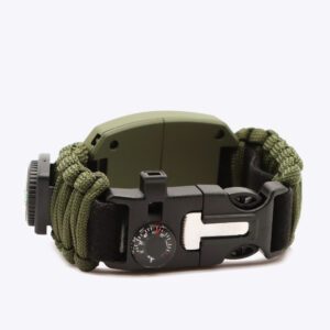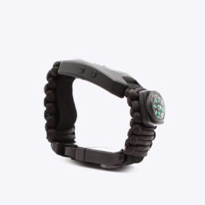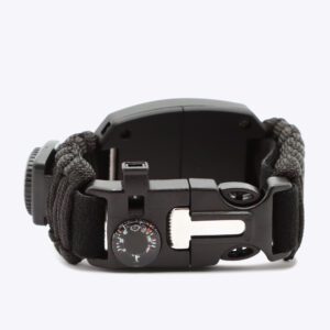 Le bracelet lui-même est composé de nylon robuste pour l’extérieur, qui peut également être utilisé en cas d’urgence comme corde de sauvetage ou pour la stabilisation. C’est particulièrement crucial en montagne ou lors d’excursions de plusieurs jours. Grâce à son poids léger d’environ 25 g seulement et à sa longueur réglable, il convient aussi bien aux adultes qu’aux enfants.