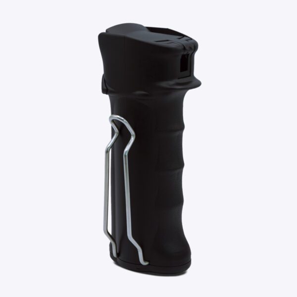 Un clip de ceinture robuste en acier, qui peut être facilement inversé pour les gauchers comme pour les droitiers, garantit un accès sûr à tout moment. Une plaque de base supplémentaire assure la stabilité et la longévité du clip. Grâce à sa conception ergonomique et à son revêtement antidérapant spécial, le spray au poivre RSG-6 tient toujours fermement en main, même avec des gants d’intervention.