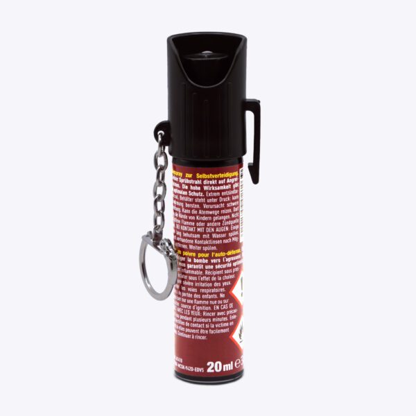 Le porte-clés intégré permet un transport particulièrement accessible – que ce soit sur un trousseau de clés, un sac à dos ou une ceinture. Son format pratique et son poids léger en font le compagnon idéal pour le quotidien – en particulier pour les femmes, les personnes âgées ou les jeunes à partir de 18 ans qui souhaitent se sentir en sécurité.