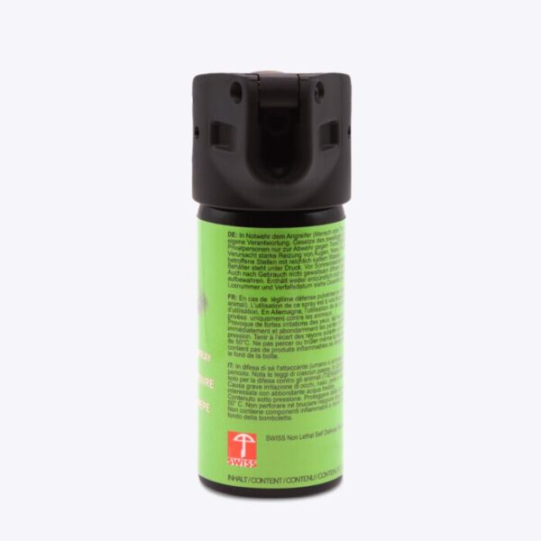 Mit kompakten 33 ml Füllmenge passt der Spray problemlos in Jacken- oder Handtaschen und erweist sich als idealer Begleiter in der Stadt oder beim Wandern. Hergestellt in der Schweiz garantiert dieser Pfefferspray Qualität und Zuverlässigkeit.