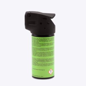 Ausgestattet mit einer 360°-Funktion ist der Spray auch kopfüber sicher einsetzbar. Seine Elektroschocker-Proof (ESP)-Eigenschaft verhindert zudem ein Versagen bei elektrischen Entladungen. Der integrierte Quick-Top Sprühkopf schützt vor ungewolltem Auslösen – kein Verdrehen oder Abdecken der Düse durch die Hand.