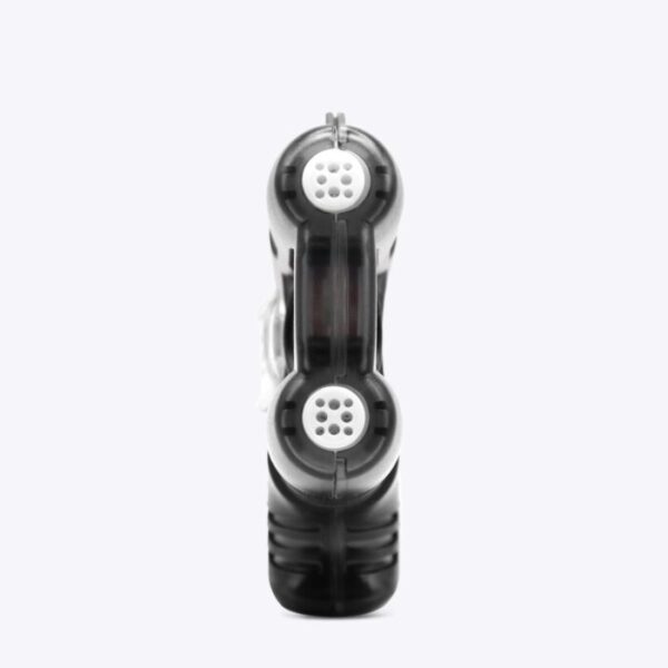 - Einsatz ohne Druckverlust – Dank des patentierten Gasgenerators wird der flüssige Reizstoff ohne permanenten Druckspeicher erzeugt, wodurch ein Druckverlust ausgeschlossen und der Pfefferstrahl auf beeindruckende 180 km/h beschleunigt wird.